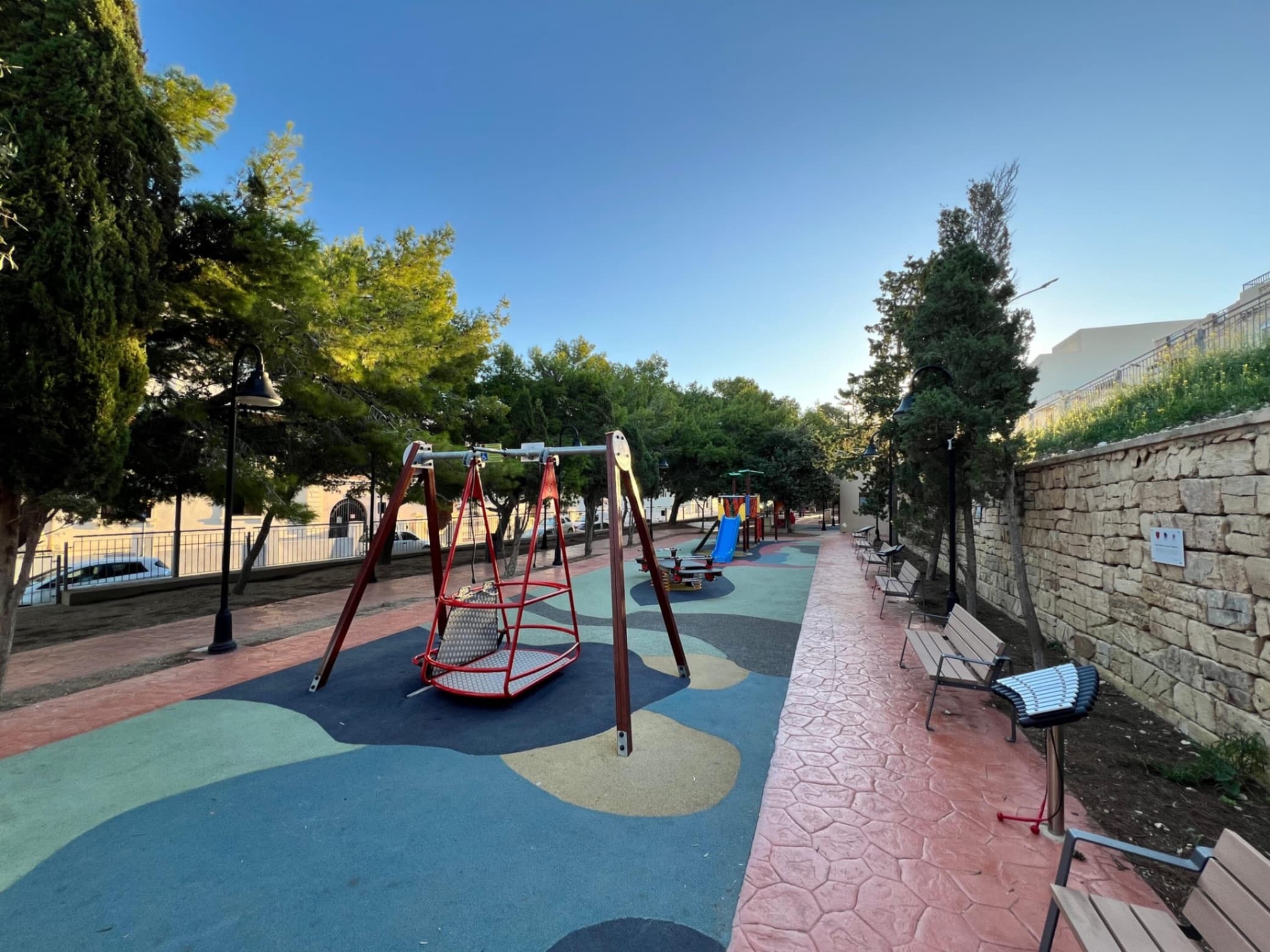 Sweet playground. Not huge but large enough, very modern and bright with ample benches and lovely trees. There is also a swing for wheelchair users. The kids loved it