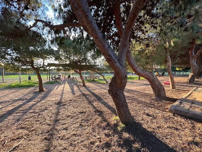 Great park, plenty of shady parts water fountains for the summer as well as the kiosk. Surrounded by trees and plants makes a nice change from all the concrete playgrounds.