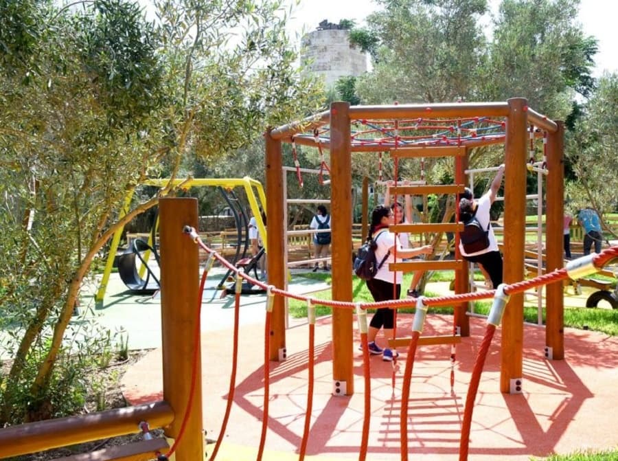 A wonderful well looked after green space in Mosta with wonderful mature trees. There is some equipment for adults and a few suitable for children. The clean toilets are very well come too. While we were there a dog walker unfortunately used the area with her large dog , which is not permitted. Otherwise it was a real oasis of calm and shade.